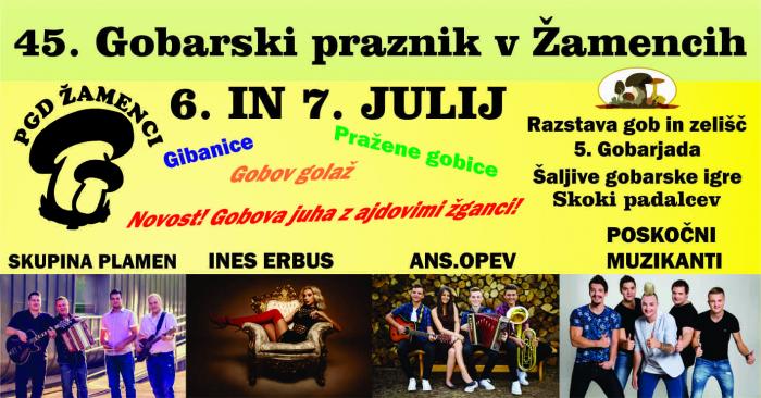 ???? Vabljeni na 45. GOBARSKI PRAZNIK, ki bo v petek 6.7. in soboto 7.7.2018 na športnem igrišču v Žamencih ????