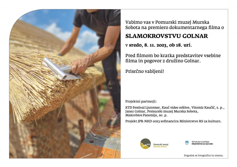 Vabimo vas v Pomurski muzej Murska Sobota na premiero dokumentarnega filma o SLAMOKROVSTVU GOLNAR v sredo, 8. 11. 2023, ob 18. uri.
