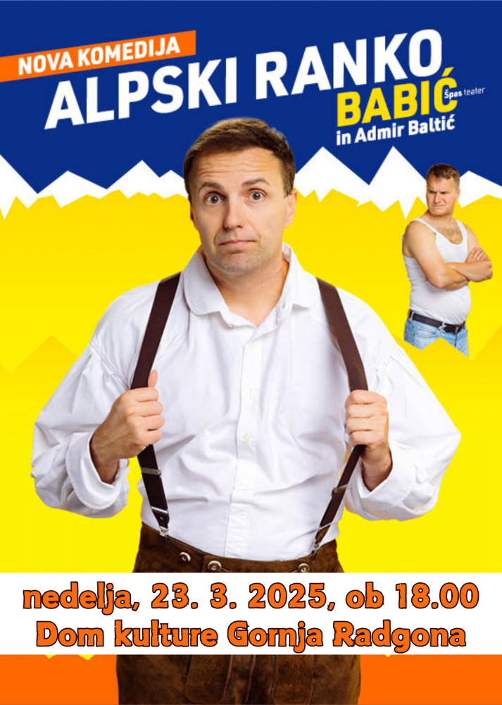 Oglejte si novo, smešno pustolovščino Ranka Babića, ki vas bo s prijateljem Admirjem spet zabaval v svojem klasičnem slogu – sproščeno in do konca iskreno! V Domu kulture Gornja Radgona na sporedu v nedeljo, 23. marca 2025, ob 18. uri. Vstopnice že na voljo v TIC Gornja Radgona in na prodajnih mestih sistema Eventim. Cena vstopnice: 23,00 EUR.