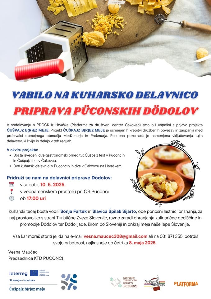 Dve kuharski delavnici v Puconcih in dve v Čakovcu na Hrvaškem.
