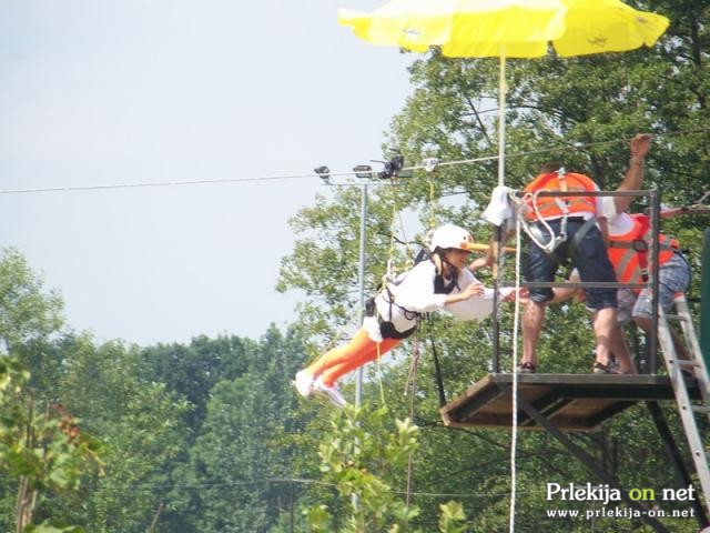 ekipe. Vsi tekmovalci preden so začeli štrkov polet so se privezali na