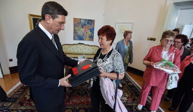 Članice Sekcije za ohranjanje kulturne dediščine pri DU Ljutomer so tipanko Jabolko podarile Borutu Pahorju