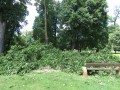 padel hrast oz. večja veja hrasta, ki je padla na vrtiček ter pod sabo pokopala tudi tri klopce.