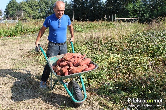 izkopa bogate letine sladkega krompirja in ogled kolekcijskega vrta z