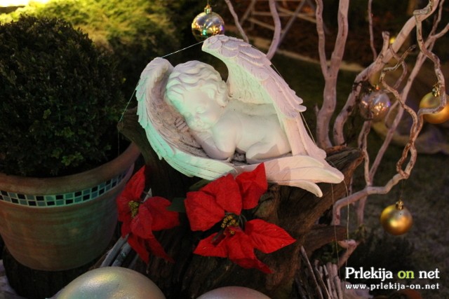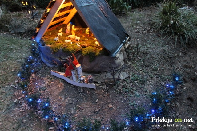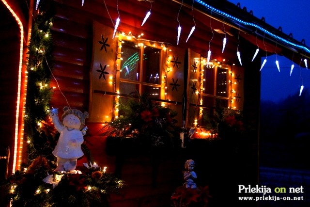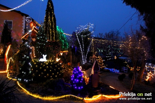 lučk, ki osvetljujejo celotno okolico hiše, jaslice, kipe, mostičke,