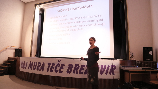 Filmski večeri po celotni regijiSlovenski energetski lobi načrtuje gradnjo hidroelektrarne na reki Muri pri Hrastju - Moti. Mura je v Sloveniji razglašena za območje Nature 2000 in je tudi osrednji del načrtovanega čezmejnega petdržavnega Biosfernega območja Mura–Drava–Donava pod zaščito Unesca. Vlada je lani potrdila nominacijo slovenskega dela reke Mure.