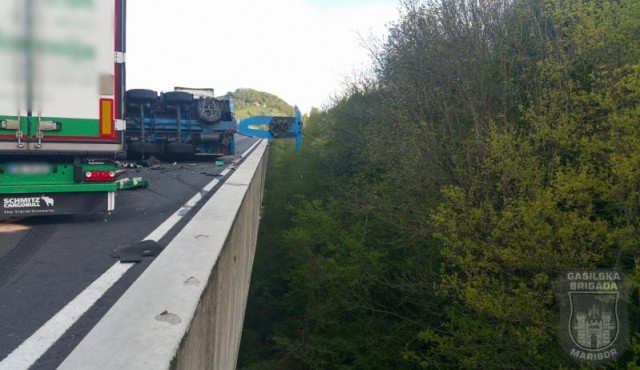 Prometna nesreča na avtocesti, foto: Gasilska brigada Maribor