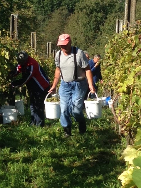trgatev grozdja v bližnji vinograd, ki ga oskrbuje domačija Šprinc in