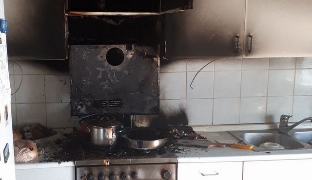Ob 13.38 pa je v naselju Pobrežje, občina Videm, na štedilniku v kuhinji stanovanjske hiše zagorela pozabljena hrana. Požar je zajel napo in kuhinjske elemente (na fotografiji). Lastnik je še pred prihodom gasilcev pričel z gašenjem požara, gasilci PGD Videm pri Ptuju in Tržec pa so ga dokončno pogasili. Prezračili so prostore ter objekt preventivno pregledali s termo kamero. Poškodovanih ni bilo.