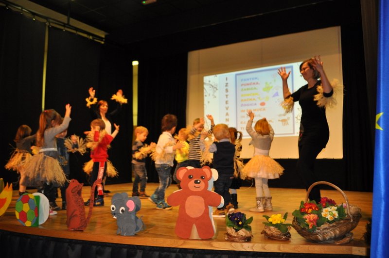 Skozi celotno dogajanje na odru so bili starši priča igri glasov, besed, združenih v izštevanko, pesmice, dramatizacijo