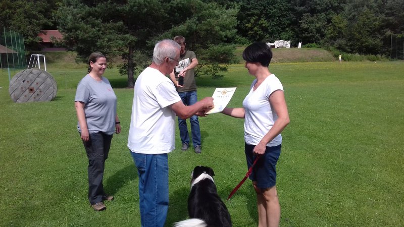 Preteklo nedeljo, 8. julija, je predsednik Silvo Lovrenčič podelil delovne knjižice izpitnikom, potrenirali pa so še za predstavitev šolanja psov, ki bo v soboto, 28. julija ob 14. uri v Mladinskem centru Prlekije na Kamenščaku.