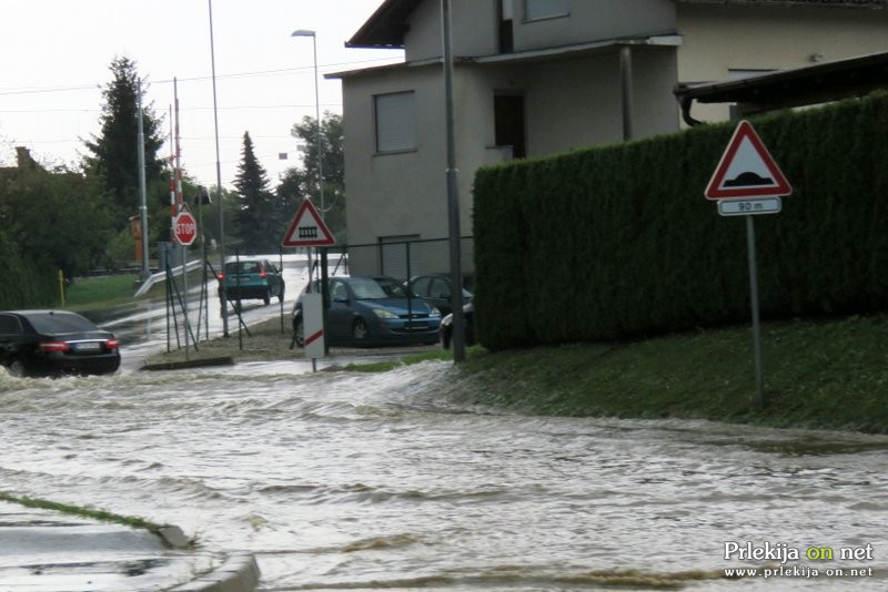 Meteorna voda je med drugim zalivala prostore nakupovalnega centra Tuš v Ljutomeru. Gasilci PGD Ljutomer so izčrpali okoli štiri kubične metre vode in tla počistili.