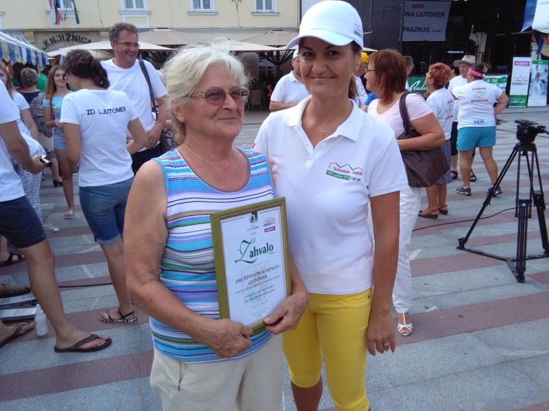 Županja, g. Olga Karba je društvu v zahvalo za sodelovanje na prireditvi podelila priznanje, prevzela pa ga je g. Marta Lasbaher, dolgoletna aktivna članica Sekcije za šport.