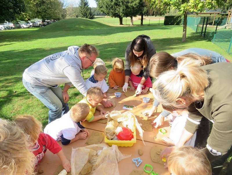 Dva dneva smo ustvarjali z glino, ki je kot naravni material že od nekdaj predstavljal izziv pri delu s predšolskimi otroki, saj je med naravnimi materiali najredkeje zastopan. Vzgojitelji smo tisti, ki moramo otroku ponuditi in približati številne različne materiale, da se z njimi seznanijo, jih znajo uporabljati in prepoznajo. Pomembno je, da jih imajo vedno na razpolago, saj bodo le tako lahko razvijali svoje sposobnosti ustvarjanja, domišljije, vztrajnosti in nenazadnje tudi ročne spretnosti. V naš vrtec smo povabili Manico Sušec s sodelavcem, ki je otrokom predstavila delo z glino. Za otroke je bil to poseben dan. Po toplem sprejemu je sledil sproščujoč pogovor o glini. Razložila nam je postopek izdelave stenskega okrasja. Bila je odlična mentorica, spodbujala nas je, da smo naredili lepe in uporabne okrasne izdelke.