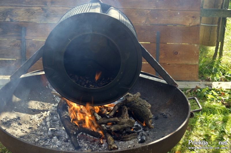 Za prešarje je nastopil čas počitka, skupaj s številnimi obiskovalci, kateri so njihovo delo budno spremljali in tudi bolj ali manj strokovno komentirali, so sedli za mizo ter se okrepčali z odlično kislo žüpo, kvasenicami, postržjačami in pečenimi kostanji. Vse skupaj pa zalili z novo naprešanim jabolčnim sokom, moštom ter seveda vinom.