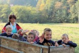 Ker je sledilo veliko vprašanj, med drugim tudi »kaj je to kožühanje?« smo se odločili, da gremo veselo na delo. Veseli povabila Sovičevih, smo se podali po gozdu Lipnjak in med goricami v Nunsko Grabo. Z navdušenjem se nam je pridružila še skupina vzgojiteljice Anite. Po zaviti cesti, med hišami, gozdom, travniku, smo le prišli do njive, ki je čakala samo na nas. Ampak najbolj je bil zanimiv »traktorček«, kot so ga poimenovali otroci. Delo, ki je sledilo, je bilo nepopisno. Vsi so se zapodili v koruzišče, trgali, nosili v košarah ali pa kar na prikolico. Največja želja, da se po končanem delu zapeljejo na »traktorčku« do hiše, se jim je tudi uresničila. Za varnost smo poskrbele vzgojiteljice in traktorist Milan.