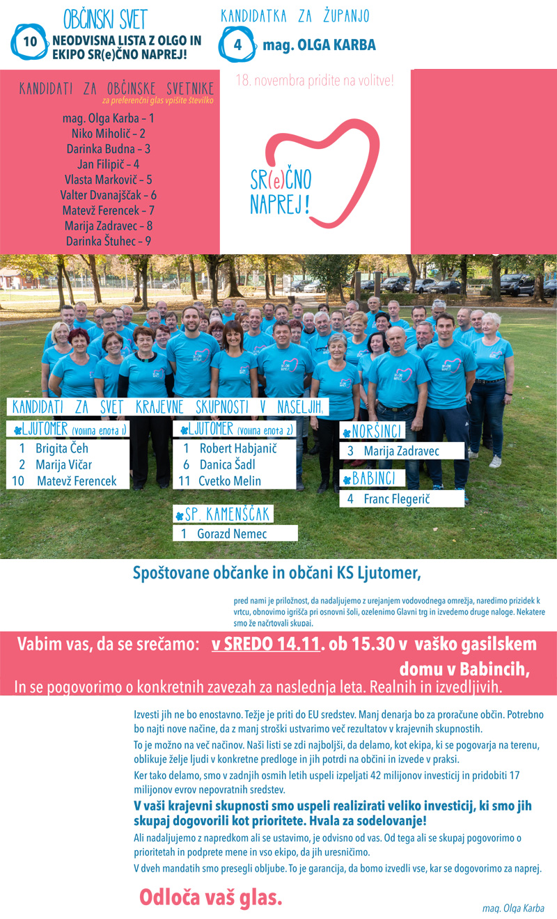 Naročnik objave je NEODVISNA LISTA Z OLGO IN EKIPO SR(e)ČNO NAPREJ!