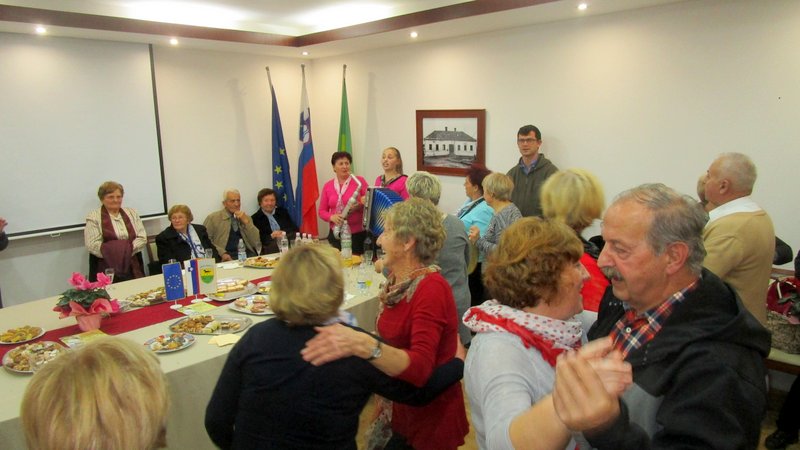 Večer se je ob zvokih harmonike ter doma izdelanih instrumentov nadaljeval v sejni sobi, kjer so bili gostje deležni dobrot, ki so jih pripravile pridne kmetice.