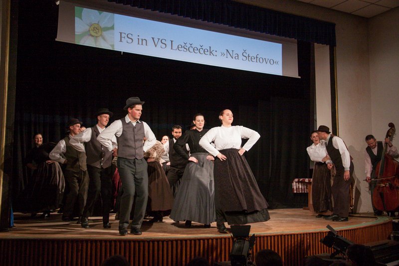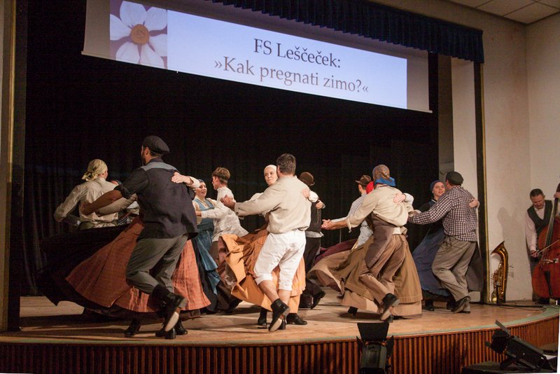 Večer se je začel udarno - z največjim prleškim praznikom - kolinami. V postavitvi, ki jo je tako kot tudi vse ostale postavil umetniški vodja Leščečkov Marko Rus, so plesalci na zanimiv in inovativen način predstavili ta kmečki običaj. Sledili so »Barbarčjaki«, člani Otroške folklorne skupine OŠ Veržej, FS Mlodi Verženci, ki so predstavili »lazenje« na Barbarino. Družina Ivančič iz Veržeja je obiskovalce pobožala z ubranim petjem božičnih pesmi, in tako na simbolni način sporočala, da je to vedno bil in je družinski praznik. Po božiču praznujemo Štefanovo - koledarsko in v predstavi. V zimskem času je bilo še posebej veselo ob »godovnikih«, saj ljudi ni preganjalo delo zunaj in so si lahko vzeli malce več časa zase, družino in prijatelje. Tako so se sosedje in prijatelji tudi zbrali na »Štefoven grünti«, mu zapeli eno hudomušno in se z njim poveselili. Prihod novega leta je v preteklosti bil zaznamovan s koledovanjem. Koledniki so hodili od hiše do hiše in s pesmijo želeli vsega dobrega v novem letu. Prav tako so se veselili življenja in se zahvaljevali za vse dobro, kar se jim je zgodilo. Koledovali so ob novem letu, v času svetih treh kraljev in ob svečnici - ki je za Prlekijo posebnost, saj so na to koledovanje šle izključno ženske. Vse to so predstavili člani Folklorne skupine Leščeček v postavitvi »Novo leto voščimo « in dokazali, da odlično deluje tudi Vokalna skupina Leščeček, ki se trudi predvsem ohranjati prleške ljudske pesmi. Kot gostje so nastopili še FS Krnica Svečina s postavitvijo vzhodnoštajerskih plesov, ki so jo poimenovali »Pridi, bova plesala«. Večer so člani KD Slavka Osterca Veržej zaključili s postavitvijo »Kak pregnati zimo?«. Po dolgi zimi so si že vsi želeli toplejših dni, svetlobe in nenazadnje - dela. Tako so se še pred postnim časom zadnjič poveselili na pusta in z njim pregnali zimo. Norčavosti na ta dan ni manjkalo in velikokrat so ravno v tem prazniku ljudje našli v sebi otroka - tistega hudomušnega, nabritega in veselega.