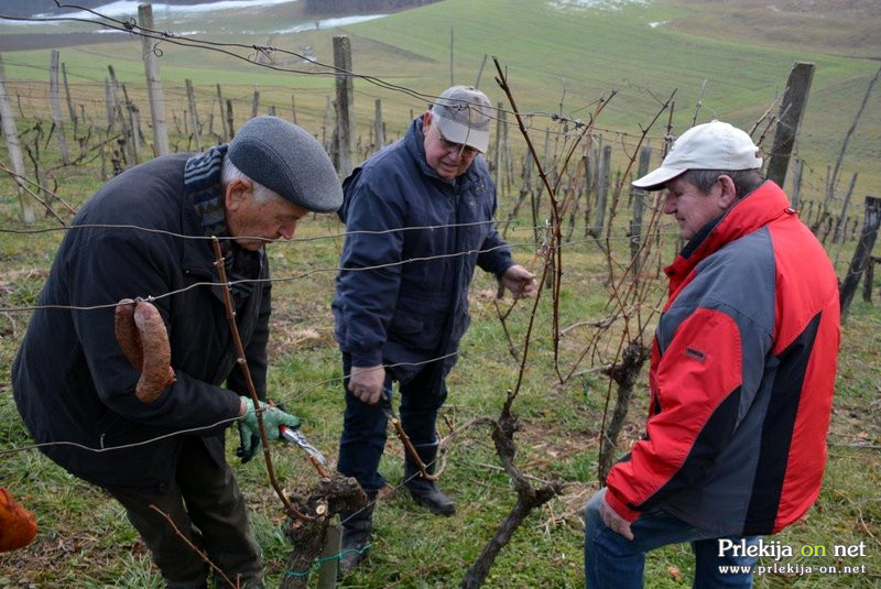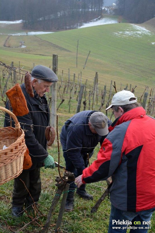 Kot pri vseh vinogradniških opravilih, strokovnjaki, pa tudi vinogradniki sami, pri rezi prihajajo do vedno novih spoznanj, katera želijo v društvu prenesti na svoje člane. In letos so se drugič srečali ob godu sv. Vincenca, ko je treba, kot to veleva dolgoletna tradicija, obrezati prve trte v vinogradu. Kako strokovno obrezati vinsko trto, je kakšnim dvajsetim vinogradnikom ter gostom, prikazal in razloil vinski vitez Slavko Lončarič, delo in vinograd pa je blagoslovil benediški župnik Marjan Rola, za kulinarične dobrote pa je skrbel Marjan Kralj. Še pred rezom so na trte, po starem običaju, obesili domače mesne dobrote, klobase, špeh (slanino) ipd. Po starem običaju namreč klobase na vinski trti oznanjajo, da naj bi za celo leto veljalo, da bi bilo dosti mesa in vina. Ko so pa končali rez, tudi če je trajala tri dni, so v vinu te klobase skuhali, tako da so imeli na koncu tudi vinogradniško malico. Tokrat klobas in drugih dobrot niso kuhali, temveč so jih že v vinogradu zaužili in zalili z odlično domačo kapljico, katero so minulo jesen dale tokrat obrezane trte. Podobno je bilo tudi malo pozneje, v Čolnikovi vinski kleti, kjer je ob dobri kapljici vsem teknil pasulj s prekajenimi rebri.