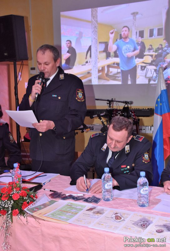 Na koncu je zbrane pozdravil in nagovoril župan Mirko Cvetko, nato je sledila še podelitev pohval, priznanj in napredovanj - činov. Po končanem uradnem delu je bila pogostitev z dobro večerjo in pijačo, za dobro voljo pa je poskrbel domač ansambel Pivski Bratje.