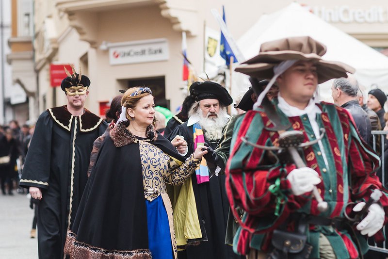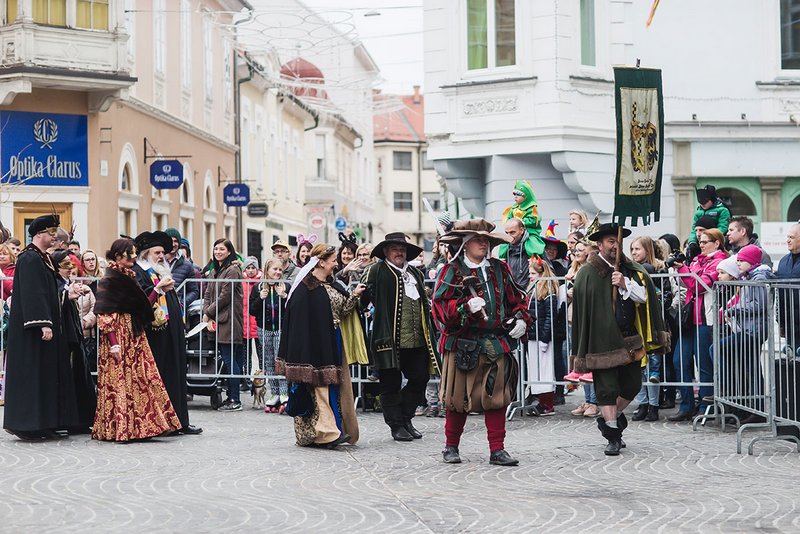 Povorko je na ulice povedel 17. princ karnevala Baron Jakob Zekel Videmski. Za njim je stopal prejšnji princ Aleš Goričan, Plemeniti Janez Maksimilijan Gregorič. Sledili so Gospodje Ptujski, Srednjeveška skupina KUD-a Baron, Srednjeveške gospe in gospodje iz Društva Cesarsko kraljevi Ptuj, Lajnar, plesalci folklornega društva Bolnice Ptuj, Dubrovniški mestni stražarji iz Hrvaške, Gozdne vile in škrati iz italijanske Skupine Morgana, Ceilidh tree iz Velike Britanije, Vivat Poetovio - Leto 69 in seveda kurenti.