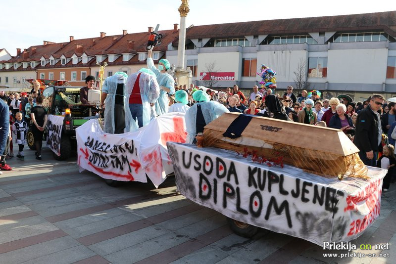 V pustni povorki se je predstavilo devet skupin, ki so na šaljiv način prikazale aktualno in drugo tematiko. Predstavili so se Pihalni orkester KD Ivan Kaučič Ljutomer, kurenti iz Cvetkovcev, OŠ Ivana Cankarja Ljutomer, TD Stara Cesta, TKD Mak Pristava, Društvo mladine Sveti Tomaž, Društvo cvenskih čehov in diklin, skupina iz Šalovcev pri Središču ob Dravi in žerovinski parlament.