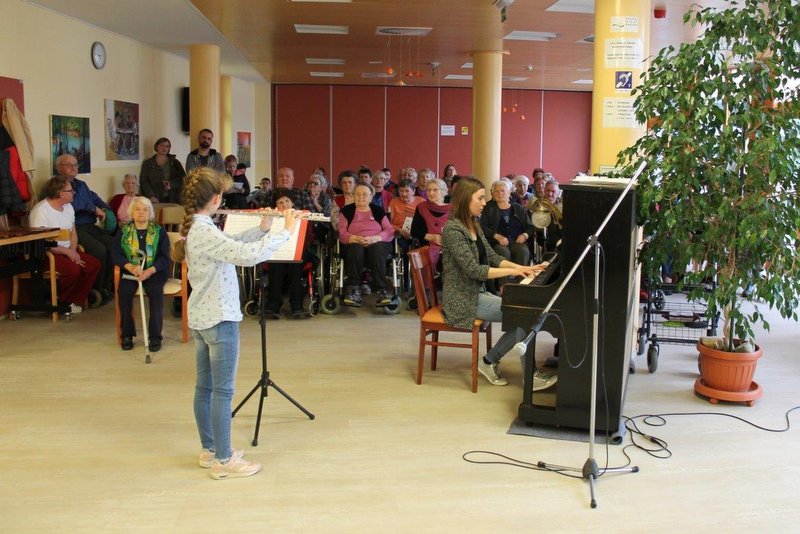 Sledil je nastop učencev radgonske Zasebne glasbene šole Maestro, ki se zelo rada odzove povabilu in je v bistvu reden gost na prireditvah v DSO Gornja Radgona. Pestra paleta instrumentov, iz katerih so mladi glasbeniki izvabljali zvoke, je pomenila za poslušalce zanimivo in zelo lepo doživetje. Zaigrali so: Aljaž Hari, Tjaša Štanta, Nina Gradišnik, Ina Ješovnik, Gal Rakuša, Nuša Magyar, Maja in Iva Racman, Brin Rues, Deni Perko, Darma Ketiš, Tian Giurgiutti in Evelin Novak. Poslušalci so lahko uživali ob skladbah različnih stilskih obdobij in glasbenih oblik. Direktor DSO se je ob koncu prireditve zahvalil z majhnim, a lepim spomladanskim šopkom, najprej direktorici ZGŠ Maestro, Meliti Vulc, nato pa še slikarki Tamari Špitalič Škorić. Prisotne stanovalke in stanovalce doma je povabil na naslednje kulturne dogodke v DSO Gornja Radgona ter se zahvalil vsem nastopajočim, njihovim mentorjem, pa tudi poslušalcem.