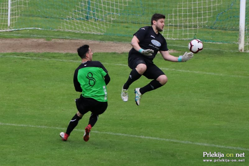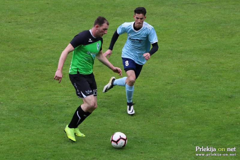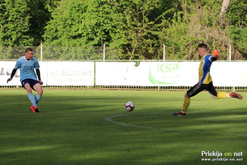 Okoli 150 gledalcev je videlo napeto tekmo, ki se je pričela v dežju, končala pa v soncu, s kar nekaj priložnosti ter prerivanji med igralci. Že v prvem polčasu je bilo podeljenih šest rumenih kartonov, rdeči pa je visel v zraku. Domači igralci so tekmo bolje pričeli in povedli že v 10. minuti, ko je zadel Miha Kušnik, v 36. minuti pa je bilo že 2:0. Zadel je Mićo Lugonjić.