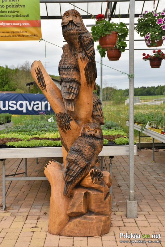 Marko Grašič je v vrtnarstvu Iris pri Svetem Juriju ob Ščavnici na ogled postavil več kot 30 lesenih skulptur, ki jih izreže z motorno žago. Marko se z izdelavo lesenih skulptur poklicno ukvarja že nekaj let in jih naredi po želji naročnika. Razstava lesenih skulptur MARG bo v vrtnarstvu Iris na ogled do 18. maja. Vsak obiskovalec lahko sodeluje v nagradni igri in osvoji leseno skulpturo v vrednosti 500 evrov.