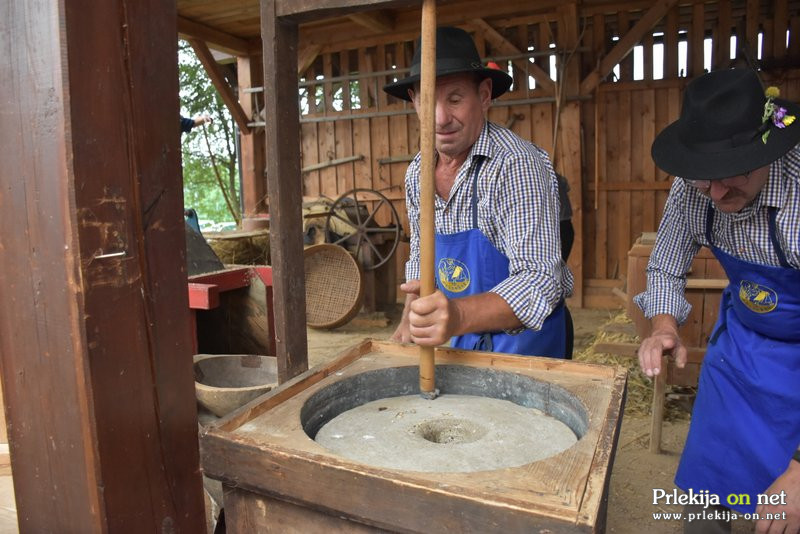 Že od samega začetka praznika žetve na Polenšaku jih na žetvi s frajtonarco spremlja njihov ljudski godec Viktor Munda. Po končani žetvi sta gospodinja in gospodar na njivo prinesla kmečko jüžino in pijačo. Na koncu žetve je furman z lojternim vozom s konjsko vprego iz njive odpeljal snope na gumno, kjer je bila potem mlatev. Najprej so štirje mlatci prikazali kako je potekala mlatev z cepmi, potem so pokazali mlatev na trešmašin na ročni pogon ter pogon na gepl katerega vlečejo konji in na koncu še mlatev z mlatilnico katero poganja traktor. Po mlatitvi je še bilo prikazano vejanje pšenice na bintmlin in mletje z žrmljami na ročni pogon.