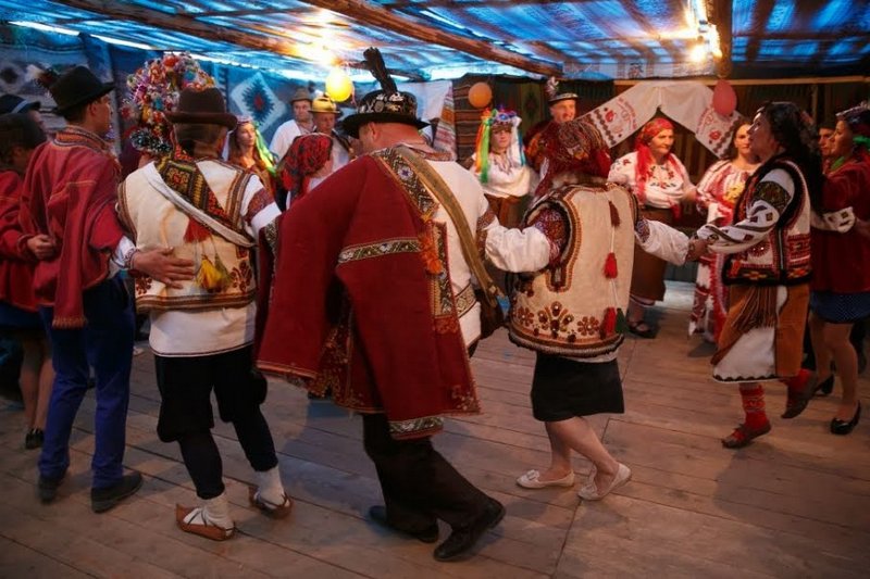 Poroka traja tri do pet dni, povabijo okrog tristo svatov. Gorilko (ukrajinsko vodko) že prej zakopljejo v zemljo in če je zmanjka, odkopljejo, ter kar tako, ohlajeno, z zajemalko, poudarjam - z zajemalko - točijo v kozarce (seveda pol razlijejo) ter ponujajo vsem svatom. Ne spiti do konca je skoraj smrtni greh, tako užališ vse člane družine, in potem ni čudno, da kar nekaj svatov pristane v ležečem položaju pod mizami. Spijo vsi na ogromnih podstrešjih, kjer se sušijo klobase in ovčja volna. Ta omamen vonj in muzika, ki jo igrata dva muzikanta brez prestanka, eden na violino, drugi na harmoniko, pri tem pa si ves čas izmišljujeta sprotno besedilo - plus močna pijača - pripelje ljudi v stanje, podobno transu. Nihče ne ve, kje je spal, s kom je spal, vse ostane zapečateno za temi podstrešji. Marsikatera mladenka izgubi nedolžnost in, če slučajno zanosi, nikoli ne izve, kdo je oče njenemu otroku. Drugi dan sledijo običaji, ko se moški preoblečejo v ženska oblačila, si obesijo na ramena tančice iz zaves, ženske pa si naredijo brke in dajo gor klobuke ter si obesijo kumarice, korenčke in takšni hodijo naokrog. Imenujejo se rjaženije, podobni so našim maškaram.