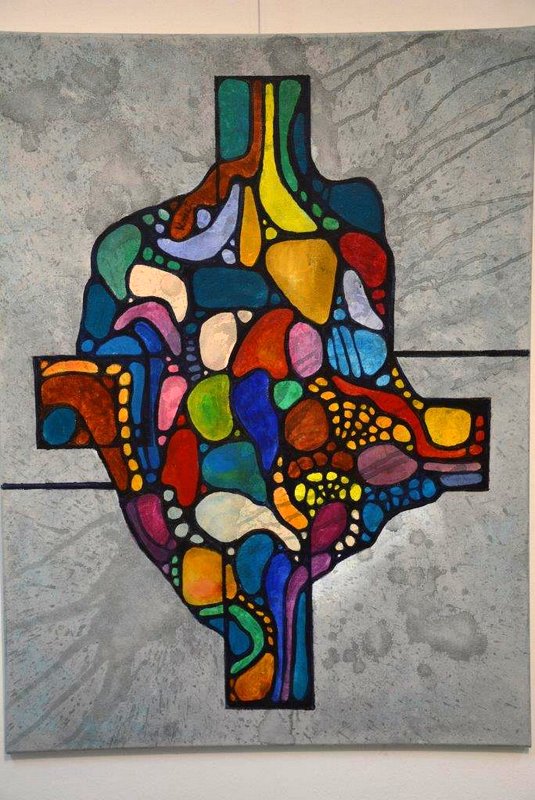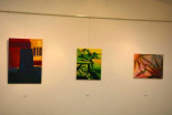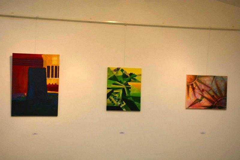 "Slika Kaos Marjane Kmet združuje red in nered. Vse je ujeto v formo, ki asocira na vitraž. Kaos se bere v napetosti oboda, ki zadržuje barvite oblike v prisilni drži. Kolaž-risba Matematična pot v enost Danile Krpič je sestav geometrijskih risb krivulj in hiperbol, ki so vertikalno nanizane kot hrbtenica neke anorganske figure. Pusto, sivo ozadje nakazuje čisti, prazni prostor miselnega vesolja. Sam svoj, kipec moške figure v žgani glini Ivanke Lehner, ima duhovit prizvok. Gleda, pa ne gleda, se smeji in pači. Prav oblat je, torej neroden v svoji drži. Ivanka Marko je v sliki Jeruzalemski hribi členila krajino kot kolažno rezane in ponovno sestavljene barvne slike. Med oblikami izstopajo krogi, orisi stiliziranih trtnih listov, trakovi in trikotniki. Dinamika je poudarjena z različnimi smermi gibanja in nizanja. Kombinacija močnih, čistih barv ter pretežno organskih oblik z vijoličnimi geometrijskimi liki v sliki Deblo, Alojzija Rousa spominja na fauvizem, gibanje francoskih slikarjev za neodvisnost barv od predmetnega sveta. Izstopajoče komplementarne barvne kombinacije harmonizirajo kombinacijo oblik. Marija Skledar v Usedlini dejanja slikarsko kopiči ter ureja forme in barve, sliko pa nadgrajuje s kolažnimi oznakami. Prevladujoči zemeljski toni nakazujejo prednost organskih, oblih form pred oglatimi. Tihožitje Nade Stajnko zaznamujejo mozaični vzorci na vrču in ozadju, ki se jačajo oziroma bledijo v barvnih tonih. Na prosojnem sloju izsekani krogi pa dajejo občutek plastenja.