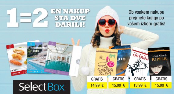 SelectBox je prava oaza adrenalinskih doživetij, wellness tretmajev, gurmanskih doživetij, luksuznih kratkih počitnic in še mnogo drugega. Z darilnim paketom SelectBox obdarovancem podarite nepozabno doživetje po njihovi lastni izbiri. Svobodno lahko izbirajo med pestrim naborom kar 2200 doživetji. Oglejte si pestro ponudbo, ki zajema 30 različnih darilnih paketov s številnimi partnerji iz Slovenije in Hrvaške. To so darila, ki bodo pustila neizmerno veliko spominov in še po obdarovanju prebujala veselje in radost.