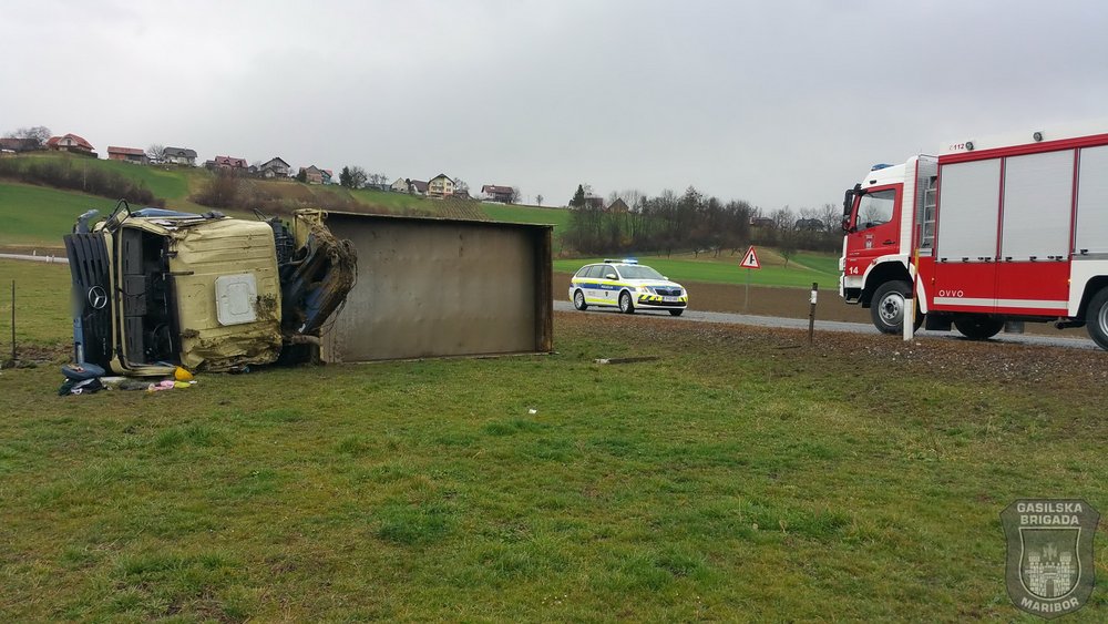 V torek, 3. marca, ob 16.18 se je v naselju Zgornji Žerjavci, v občini Lenart v Slovenskih goricah, zgodila prometna nesreča, kjer je tovorno vozilo zapeljalo z vozišča.