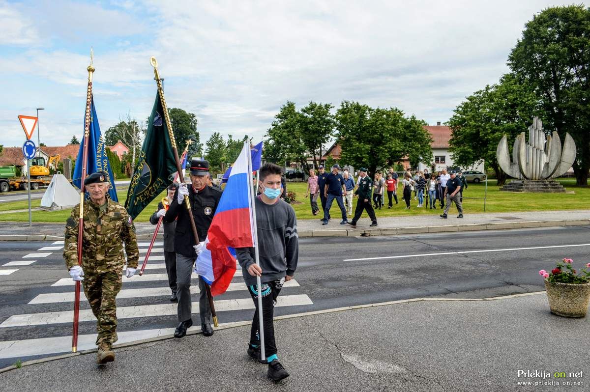 Pričetek pohoda učencev osnovne šole in članov domoljubnih in veteranskih društev, je bil pri OŠ Veržej, kjer spominska plošča ob vhodu v šolo opominja na 2. svetovno vojno. Kolona se je, na čelu s prapori in zastavami domoljubnih in veteranskih društev, pomaknila do spomenika skladatelju Slavku Ostercu, kjer je o glasbenem delovanju veržejskega rojaka spregovoril učitelj glasbe Zoran Repija.
