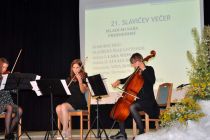 Otroci iz najstarejše skupine iz vrtca so se s svojimi vzgojiteljicami predstavili trikrat, prvič z gibalno vajo, drugič so pokazali matematično znanje na svoji stopnji, poznavanje barv, v tretjem nastopu pa so zapeli in pokazali, kako so oglašajo različni instrumenti. Z vsakim prisrčnim nastopom so napovedali naslednjo točko programa. Vita Borovič, Lara Weis in Lucija Divjak so nastopile na violončelu in violinah in poskrbele za pravi umetniški pečat prireditvi. Proti koncu je prisotne pozdravila predsednica društva Silva Duh in spregovorila o pomenu Slavičevega večera, vrednotah ki jih je zastopal dr. Matija Slavič in njihovem pomenu v današnjem času. Spregovorila je o obeh mladih dijakih, njuni strasti in osredotočenosti na svoja interesna področja ter o pomenu podpore mladih v procesu vzgoje in izobraževanja s strani njihovih vzgojiteljev, učiteljev in trenerjev.