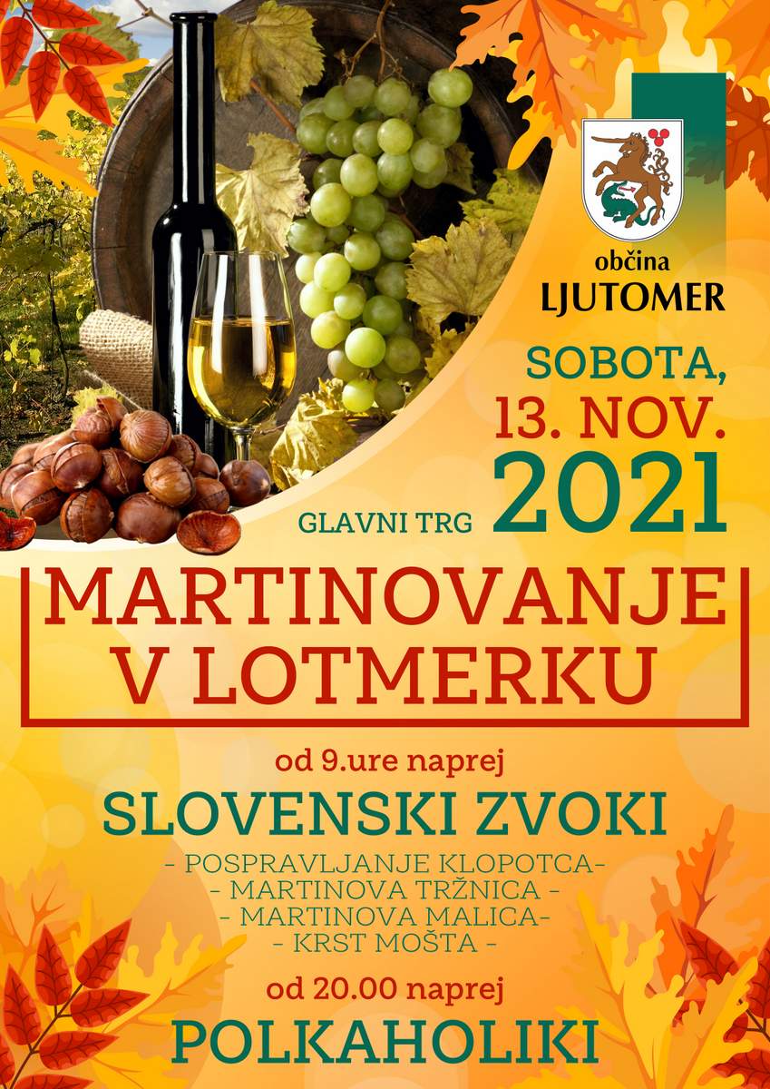 Martinovanje, praznovanje godu sv. Martina in veliki vinski praznik, bo letos tudi na Glavnem trgu v Ljutomeru. Občina Ljutomer in družba ŠIC d.o.o. organizirata »Martinovanje 2021 v Lotmerki«, ki bo v soboto, 13. novembra 2021, na osrednjem trgu prleške prestolnice.