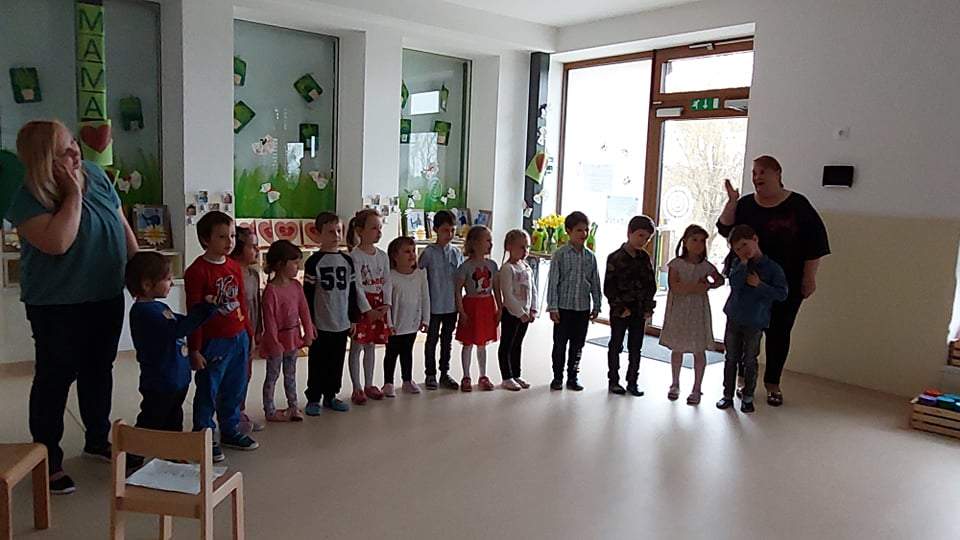 Mi smo sreči namenili sredin popoldan. Tako smo 30. 3. 2022 ponovno po dveh letih prekinjenih druženj z velikim veseljem lahko spet povabili medse naše mamice in očke in to celo v novo telovadnico vrtca. Za vse to smo neizmerno hvaležni. Predstavili smo se s programom, ki smo ga otroci in vzgojiteljice skrbno pripravljali prav za to druženje.