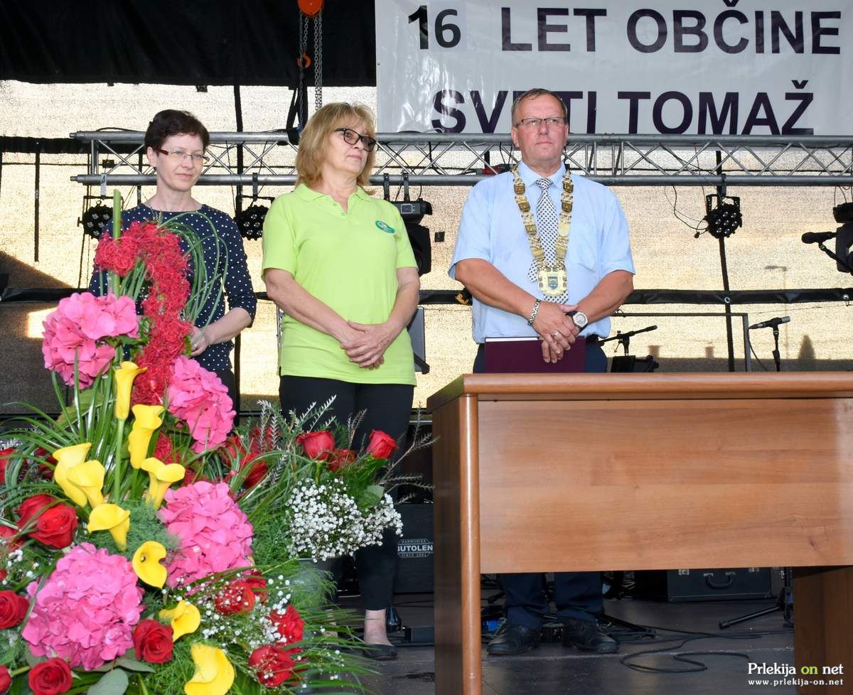 Občina Sveti Tomaž je letos od 24. junija do 3. julija praznovala 16. občinski praznik. Slovesni vstop v praznik je potekal v petek, 24. junija. Pričel se je z ešalonom vseh društev, organizacij in klubov, ki delujejo v občini, ki so se sprehodili izpred šole proti večnamenskemu prostoru pri kulturnem domu, kjer je bil osrednji prostor prireditve. Ešalon so spremljali člani godbe Ivanjkovci.