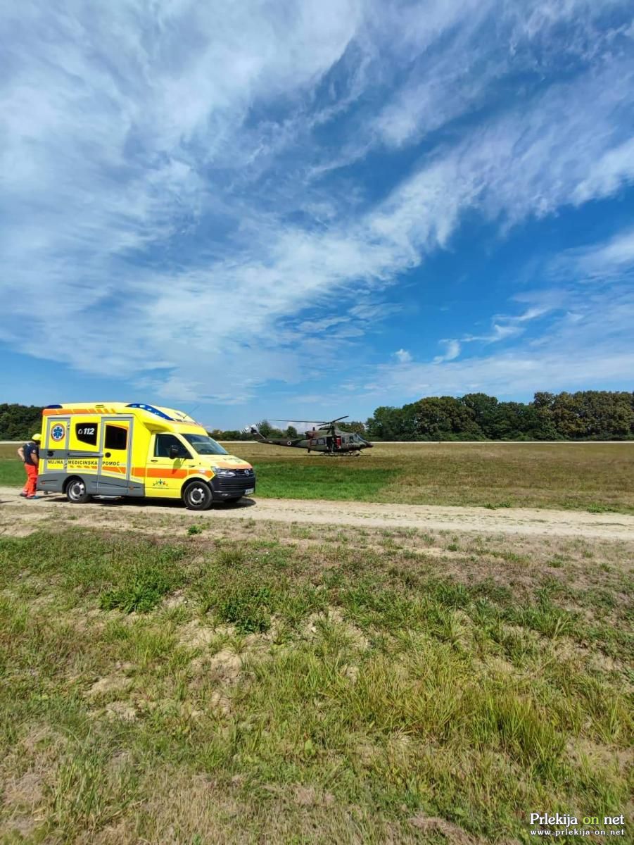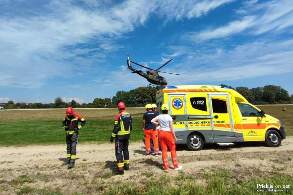 Helikopter je poškodovano osebo prepeljal na nadaljnje zdravljenje v UKC Maribor.