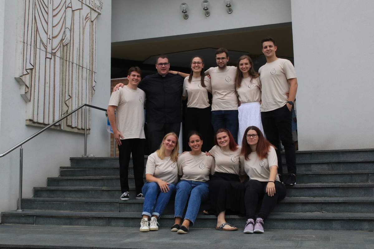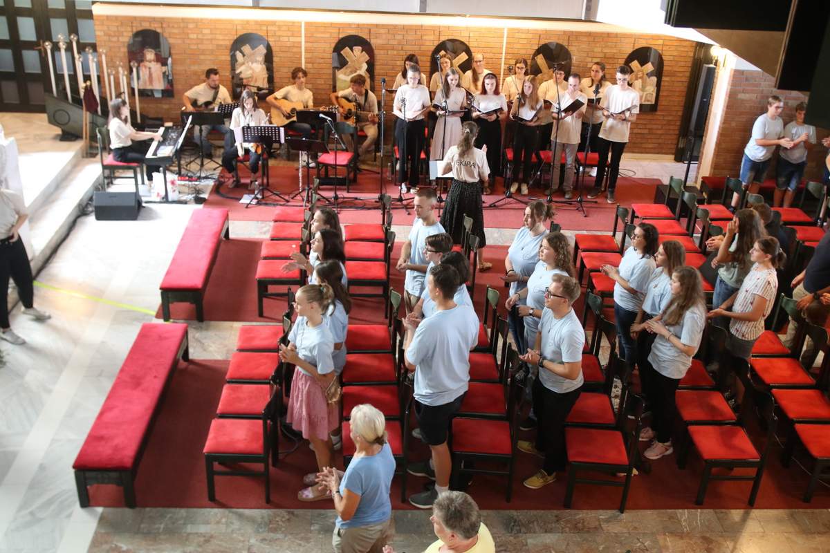 V ta dom smo letos priromali 27. 8. 2022 v župnijo sv. Cirila in Metoda v Radencih. Ob 14.00 smo otvorili skupno dogajanje s pesmijo "Hozana na višavah" in se tako podali na pot kateheze, ki jo je vodil letošnji novomašnik Janez Meglen iz novomeške škofije. Skozi svojo pot duhovništva nam je predstavil, kaj pomeni zaupanje v Boga ter nam vlil poguma za naslednje korake. Predstavil nam je drugačen pogled sv. maše, kjer se združijo tri občestva: krščansko občestvo med seboj, občestvo v vicah ter občestvo, ki je že pri Bogu in ga slavi. Tako se pri sv. maši združimo vsi v eno, kar nas uči Jezus: "... da bi bili eno, kakor sva midva eno: jaz v njih in ti v meni, da bi bili popolnoma eno" (Jn 17, 22-23a).