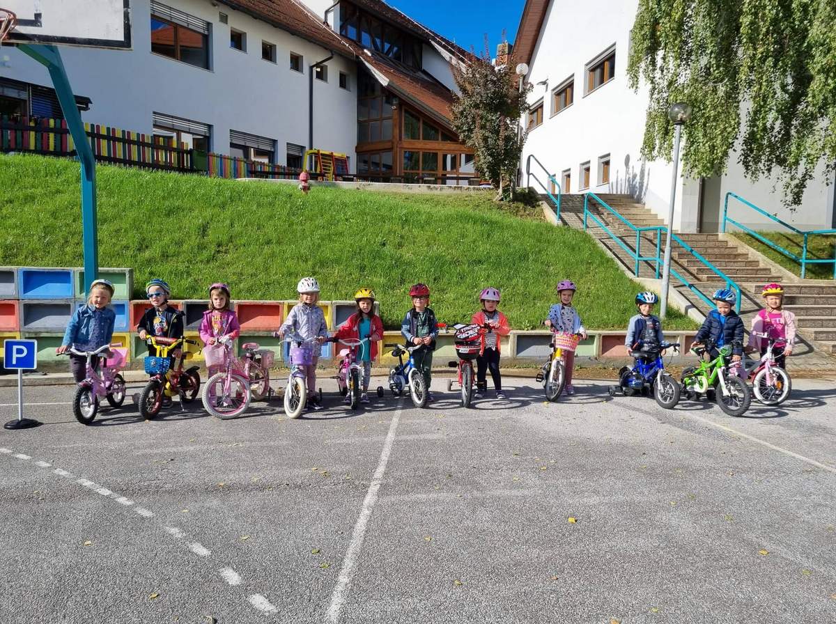 Sreda, 21.9. - KOLESARČKOV DAN - vsi otroci iz vrtca so se ta dan veselo vozili s poganjalci, avtomobili in skiroji. Starejši otroci so v vrtec pripeljali kolesa in seveda tudi varnostne čelade. Bil je pravi kolesarski dan.