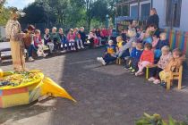 Četrtek, 22.9. - OBISK TETKE JESENI - Tetka Jesen se je odločila, da letos pride v naš vrtec na obisk in otrokom razloži kako pomembna je hoja za zdravje in čistejše okolje.