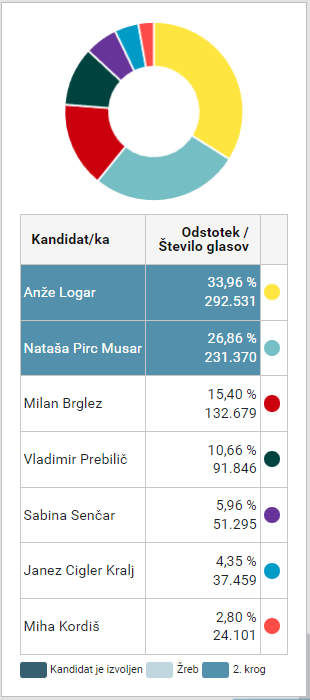 Po 99,99 % preštetih glasovnicah (865.299 oddanih, 861.281 veljavnih glasovnic):