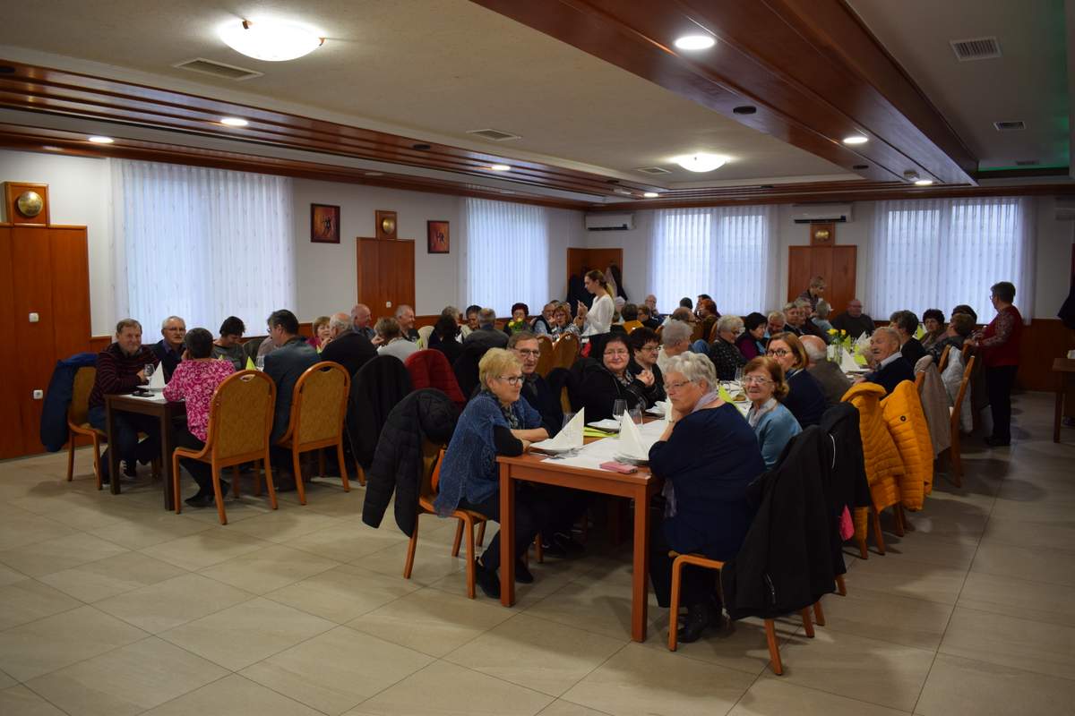 Člani Društva upokojencev Križevci cenimo svetnika sv. Martina, ki nam vsako leto mošt spremeni v vino! To smo seveda proslavili in primerno počastili 16.11.2022 v gostišču Mencigar v Krajni pri Tišini. Že uigrana organizacijska ekipa s predsednico Milico na čelu se je zavedala, da brez zagotovljenega prevoza, ne bo prave sprostitve in degustacije, zato je bil angažiran naš član Branko Novak, voznik avtobusa, da poskrbi za ustrezen avtobus in vesele udeležence varno pripelje tja in nazaj mimo vseh pasti ekip v modrem. Cena zanj pa znana: nič alkohola, a tega je že navajen pri svojem odgovornem delu. Seveda pa brez obveznega uvodnega nagovora predsednice in dobrodošlice gospodarice gostišča le ni šlo. No potem pa je le mikrofon in vsemogočni instrument v roke vzel naš stalni in preizkušeni glasbenik in animator g. Branko Petek. Prijeten klepet zbrane več kot 60 glave družbe je malo zamrl le ob postreženi obilni hrani, pijača pa je bila tako stalno na mizah, kot se spodobi. Prijetna raznovrstna glasba je marsikoga prepričala, da se je podal na prostor za ples, ob pomanjkanju moške plesne sile, pa je bil v igri tudi »damenval« s povabilom tudi plesalk na plesišče. Na plesišču se je izkazalo, da imajo tudi upokojenci neverjetno znanje in energijo za ples, kar bi zavidal marsikateri mlajši. Prišlo pa je tudi do nenapovedane »izdaje« rojstnodnevnega slavljenca, ki je dogodek tudi ustrezno sprejel in »počastil«, kar pa je imelo tudi nenadejan pozitivni odziv pri glasbeniku Branku, ki se je zaobljubil, da nam upokojencem DU Križevci brezplačno zaigra ob naslednjem druženju ob koncu tega živahnega leta. Seveda smo se mu za izkazano gesto vsi hvaležno zahvalili in ga pričakujemo med nami 20. decembra na našem prednovoletnem srečanju v hotelu v Ljutomeru. Dobro razpoloženje in varen prevoz je organizatorjem in vozniku povzročal težave, saj vesela družba ni želela ob dogovorjeni uri zapustiti gostilne in se preseliti v ogreti avtobus. Malo kasneje pa smo se le odločili držati se dogovora in zapustili gostišče ob utišanju glasbe. Veselo smo si zaželeli: na svidenje v Ljutomeru decembra!