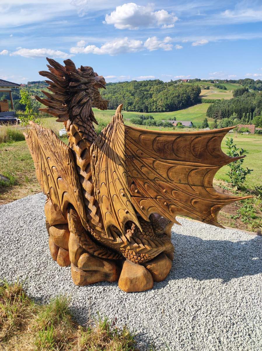 Marko Grašič, mojster v izdelavi lesenih skulptur iz Male vasi pri Svetem Tomažu je v letu 2022 izdelal kar nekaj zanimivih in lepih skulptur po naročilu kupcev.