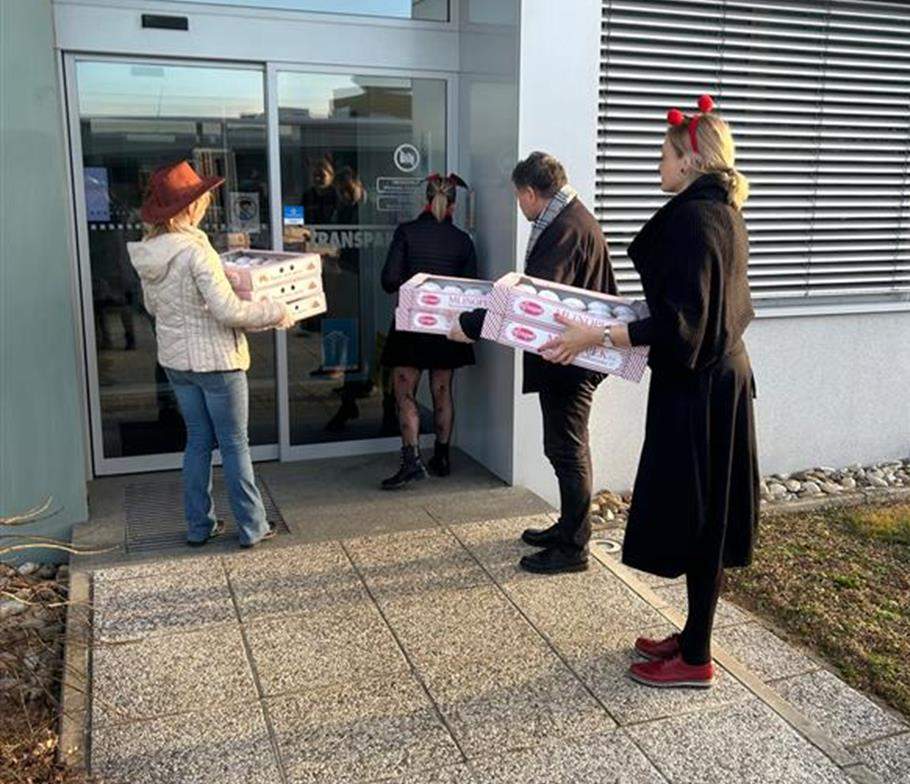 Z dobrodelnimi krofi so se Carthagovci posladkali na sončno opoldne pustnega torka. Da pa so bili krofi še slajši ter nasmehi še širši so se zaposlenim ob tem pridružili tudi ptujski kurenti, ki so z gromkim zvonjenjem prišli odganjat zimo ter naznanjat pomlad.