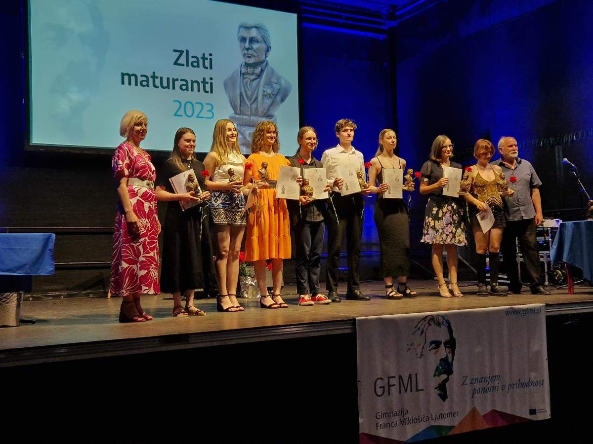 Slavnostna podelitev maturitetnih spričeval, kakor tudi kipcev Franca Miklošiča zlatim maturantom in dijakom za posebne dosežke, je bila v ponedeljek, 10. julija, na Glavnem trgu v Ljutomeru, maturantom pa so čestitali in jim zaželeli vse dobro na nadaljnji življenjski poti ravnatelj GFML Zvonko Kustec, predstojnica Zavoda za šolstvo OE Murska Sobota Darja Farič Klemenčič in županja Občine Ljutomer mag. Olga Karba.