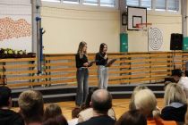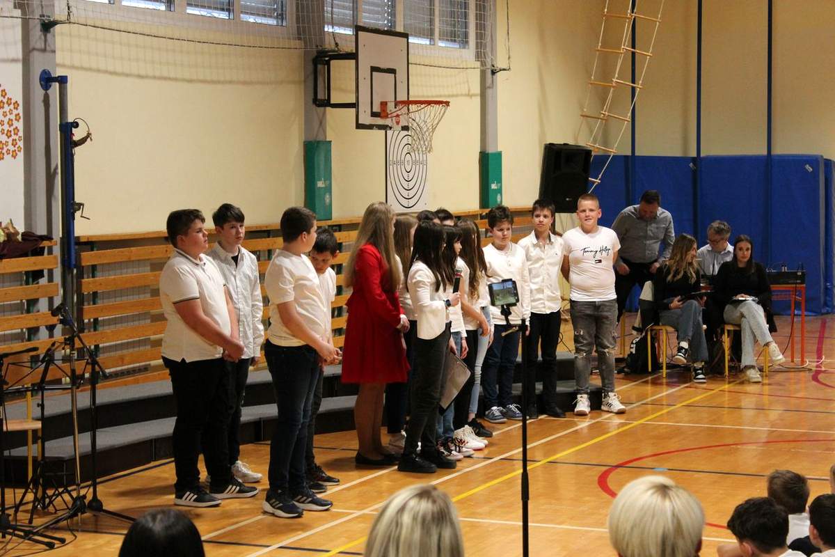 Učenci so skupaj z mentorji pripravili še posebej pester program, prežet z glasbo, petjem, plesom in deklamacijami. Želja otrok se je uresničila: polni telovadnici staršev so polepšali popoldan, privabili nasmeh na usta ter napolnili naša srca s toplino.